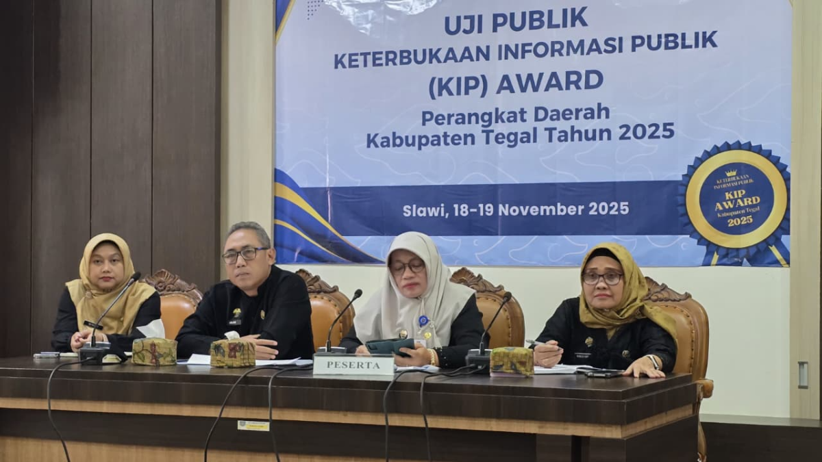 Slawi - Pemerintah Kabupaten Tegal kembali menunjukkan komitemennya dalam mewujudkan tata kelola pemerintahan yang transparan dan akuntabel. Hal tersebut ditunjukkan melalui partisipasi pada kegiatan uji publik Keterbukaan Informasi Badan Publik., yang dipaparkan langsung oleh Bupati Tegal Ischak Maulana Rohman, pada Selasa (25/11/2025) bertempat di Badan Pengembangan Sumber Daya Manusia Daerah Provinsi Jawa Tengah.