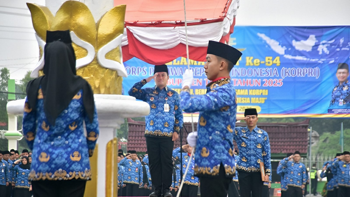 Slawi – Pemerintah Kabupaten Tegal menggelar upacara peringatan Hari Ulang Tahun (HUT) ke-54 Korp Pegawai Republik Indonesia (Korpri) di Lapangan Pemkab Tegal, Senin (1/12/2025). Upacara berlangsung khidmat dan dihadiri oleh perwakilan ASN di lingkungan Pemkab Tegal.