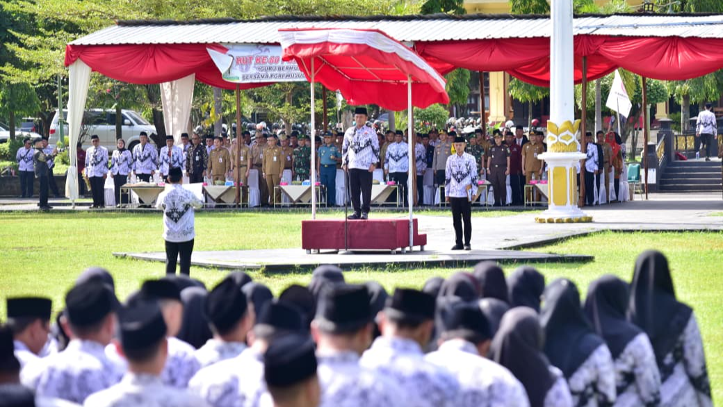 Slawi – Pemerintah Kabupaten Tegal menggelar Upacara Peringatan Hari Guru Nasional 2025 di Lapangan Pemda, Selasa (25/11/2025).