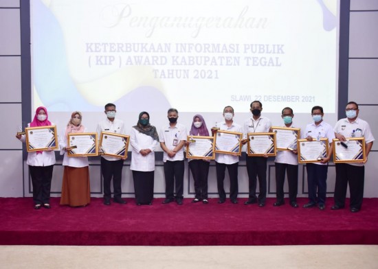 Slawi- Pemerintah Kabupaten Tegal melalui Dinas Komunikasi dan Informatika menyelenggarakan Keterbukaan Informasi Publik (KIP) Award 2021. KIP award yang baru pertama kali diselenggarakan itu diikuti seluruh Organisasi Perangkat Daerah (OPD) di lingkungan Pemerintah Kabupaten Tegal selaku Badan Publik, baik itu Dinas/ Badan, Sekretariat Daerah/ Sekretariat DPRD/ satpol PP maupun dan 18 OPD kecamatan.
