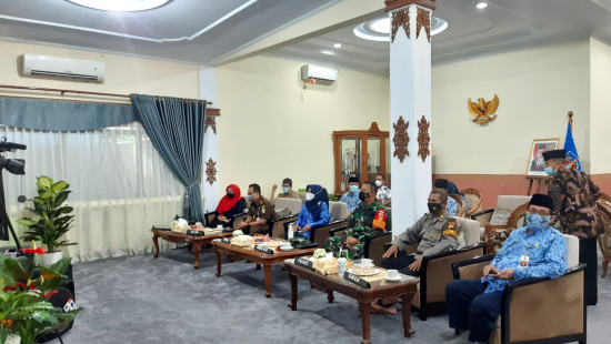 Slawi – Bupati Tegal Umi Azizah beserta jajarannya mengikuti acara Halal Bi Halal Bareng Gubernur dan Wakil Gubernur Jawa Tengah secara virtual di Rumah Dinas Bupati Kabupaten Tegal, Senin (17/05/2021).