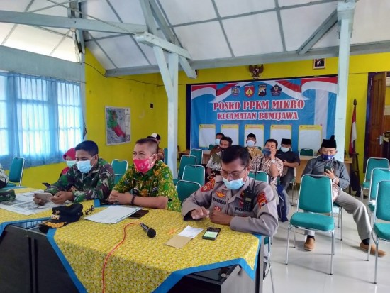PAGERBARANG-Menindaklanjuti Program Pemerintah Kabupaten Tegal dalam percepatan penanganan penyebaran Covid-19, Camat Pagerbarang bersama Forkopimcam dan Pemerintah Desa melakukan pengawasan Prokes di Posko PPKM Mikro bertempat di Desa-desa Kec Pagerbarang, Selasa (11/5/2021).