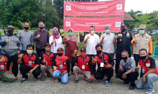 Slawi - Tower Bersama Group yang bergerak di bidang jasa penunjang telekomunikasi memberikan bantuan kepada tenaga medis di Kabupaten Tegal. Bantuan berupa 4.700 masker medis, 600 baju hazmat serta 500 pasang sarung tangan medis itu diterima langsung oleh Kepala Dinas Kesehatan Kabupaten Tegal Hendadi Setiadji di Pendopo Amangkurat Pemkab Tegal pada Selasa (03/11/2020) sore.