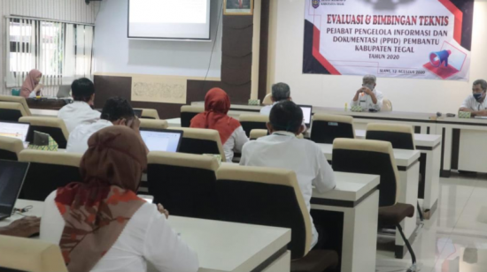 Slawi- Sebagai salah satu Upaya optimalisasi layanan keterbukaan Informasi Publik yang berkualitas dimasa pandemik Dinas Komunikasi dan Informatika Kabupaten Tegal menyelenggarakan Rapat Evaluasi dan Bimbingan Teknis Pejabat Pengelola Informasi dan Dokumentasi (PPID) Pembantu Tahun 2020 di Lingkungan Pemerintah Kabupaten Tegal.