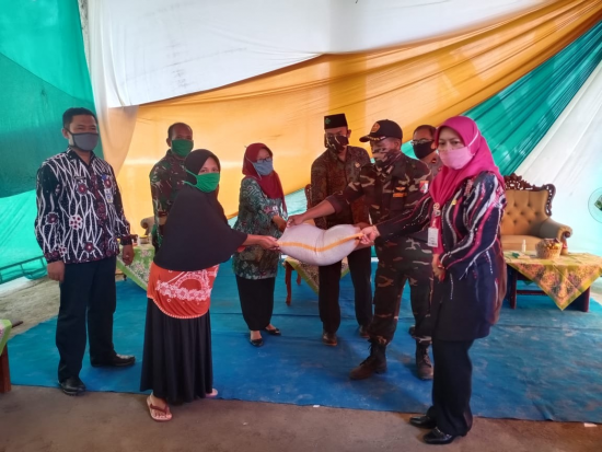 Slawi- Bupati Tegal Umi Azizah didampingi Kepala Dinas Sosial Dra Nurhayati MM dan Dandim 0712 serahkan bantuan sembako berupa beras 2,58 ton dalam bentuk paket sembako 20 Kg yang akan dibagikan pada Keluarga Penerima Manfaat ( KPM ) desa berkat kecamatan Tarub yang terdampak pandemi Virus Covid 19 Kamis 23/4/2020 . Bantuan diserah terimakan secara simbolis di Balai desa Brekat pada salah warga dan bantuan nantinya akan disalurkan oleh pihak Kepala desa pada warga yang berhak menerima.