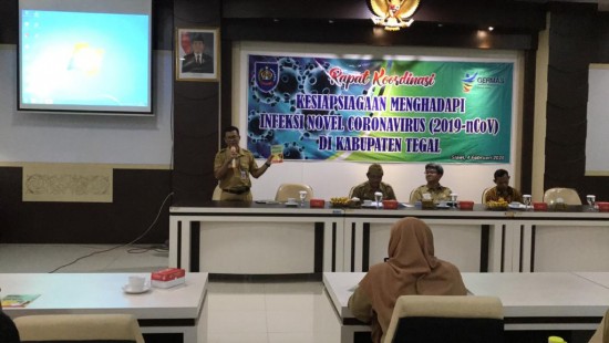 Slawi - Kepala Dinas Kesehatan (Dinkes) Kabupaten Tegal Hendadi Setiadji menegaskan bahwa hingga kini tidak terdapat laporan infeksi virus corona atau Novel Coronavirus (2019-nCov) di wilayah Kabupaten Tegal. Meskipun demikian, Hendadi mengajak seluruh masyarakat agar tetap meningkatkan kewaspadaan akan virus tersebut, bahkan masyarakat perlu mengetahui upaya pencegahannya. Pernyataan tersebut diungkapkan Hendadi saat acara Rapat Koordinasi Kesiapsiagaan Menghadapi Infeksi Novel Coronavirus (2019-nCov) di Kabupaten Tegal pada Selasa (4/2) di Gedung Chandra Kirana Setda Pemkab Tegal.