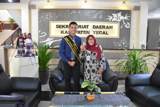 Slawi - Remaja asal Kabupaten Tegal yang bernama Yovensius Bara Tresno Adi (18) akan maju ke tingkat nasional mewakili Jawa Tengah di ajang Wajah Pesona Indonesia 2019 of Asia. Ajang bergengsi ini diselenggarakan setiap tahun oleh Plor Management yang didukung Kementerian Pariwisata Republik Indonesia. Pada hari Kamis (26/9) pagi tadi, Bara yang ditemani keluarga serta managementnya menemui Bupati Tegal Umi Azizah, untuk meminta doa serta dukungan agar mendapatkan hasil maksimal dan terbaik pada ajang Wajah Pesona Indonesia 2019 of Asia.