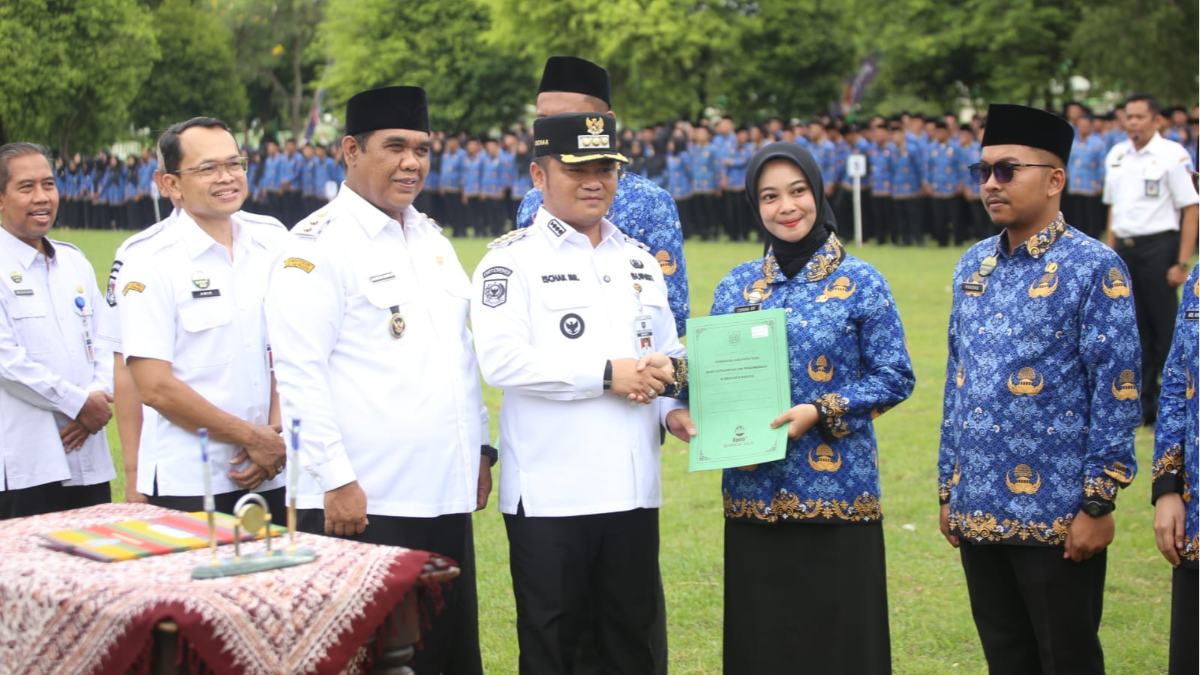 Slawi - Bupati Tegal, Ischak Maulana Rohman secara resmi menyerahkan surat keputusan pengangkatan PPPK Paruh Waktu di lingkungan pemerintah Kabupaten Tegal, Rabu (03/12/2025).