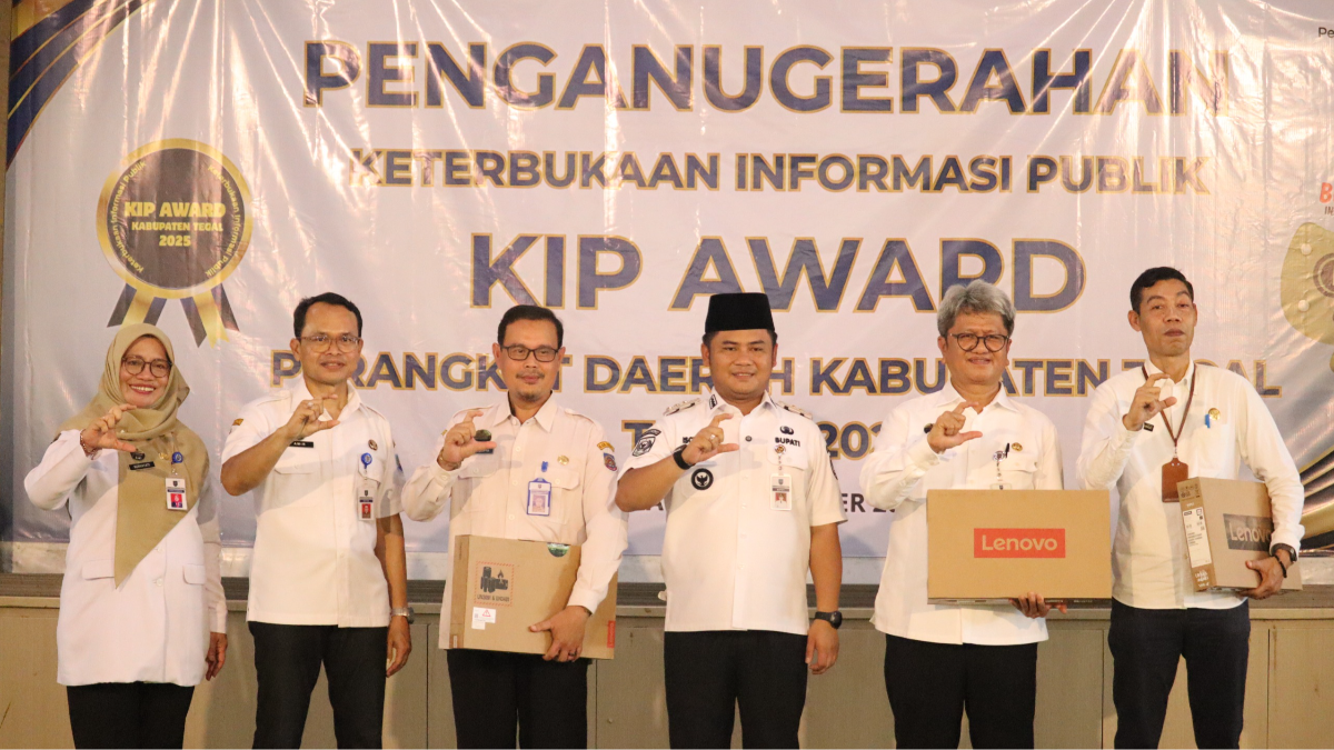 Slawi - Pemerintah Kabupaten Tegal menggelar Penganugerahan Keterbukaan Informasi Publik (KIP) Award 2025 di Pendopo Amangkurat, Rabu 3/12/2025). Kegiatan ini dihadiri oleh Bupati Tegal, Sekretaris Daerah, serta Kepala Organisasi Perangkat Daerah (OPD) dan Pejabat Pengelola Informasi dan Dokumentasi (PPID) di masing-masing OPD se-Kabupaten Tegal.