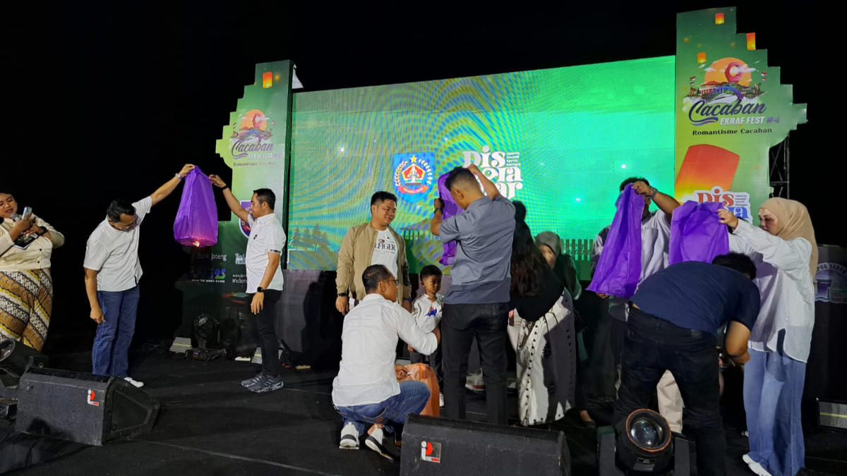 Slawi - Senja perlahan berganti malam di kawasan Daya Tarik Wisata (DTW) Cacaban, Sabtu (13/12/2025). Di tepian waduk yang tenang, kreativitas, budaya, dan harapan bertemu dalam balutan Cacaban Ekraft Festival 2025, yang tahun ini memasuki penyelenggaraan keempat.